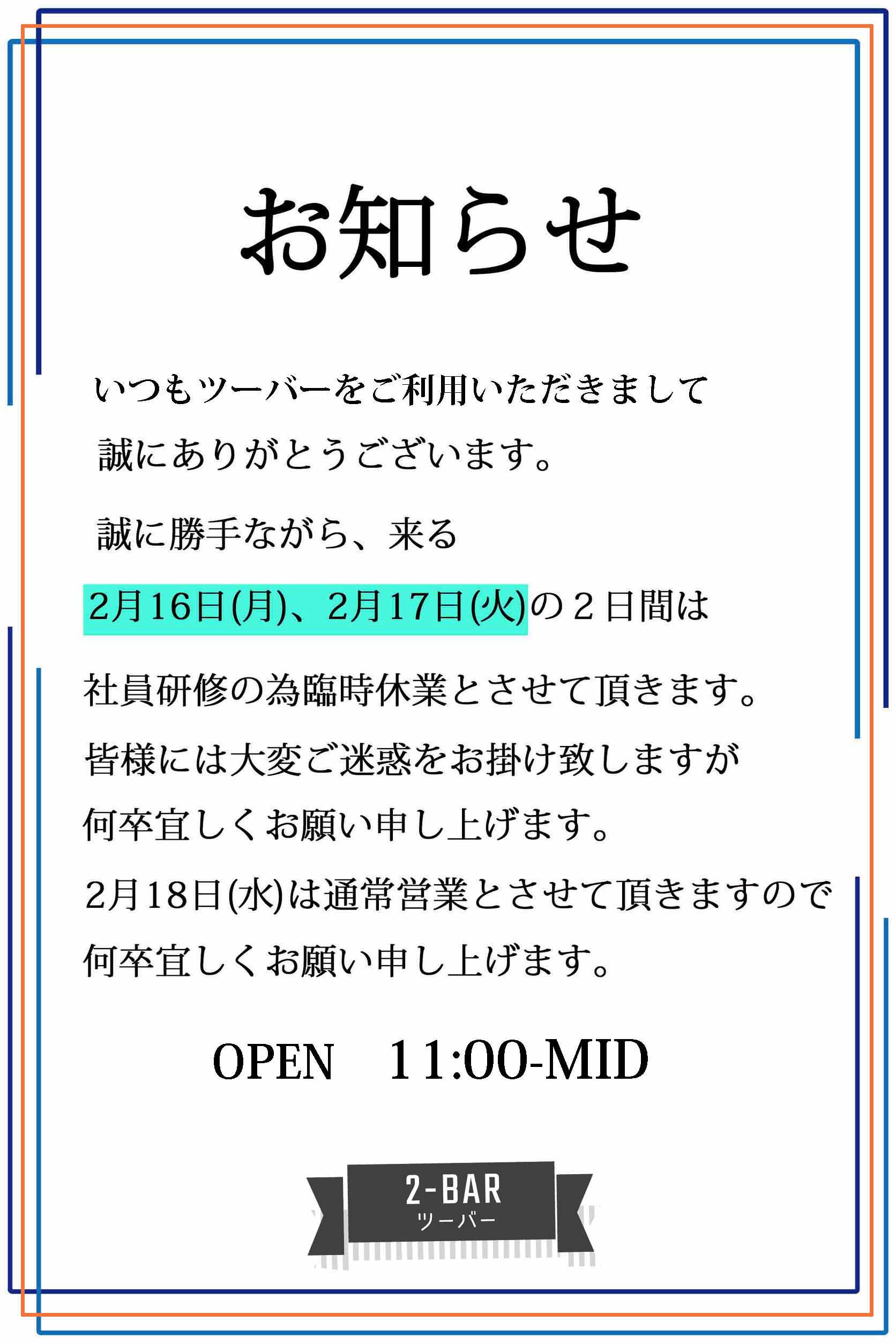 ツーバーからのお知らせ!